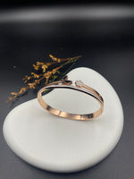 A stunning fusion of delicate beauty and sparkling detail, this rose gold bracelet features a graceful butterfly paired with a petite floral charm. Accentuated with a row of shimmering stones along the band, it’s a statement of elegance and femininity — ideal for both everyday luxury and special occasions.