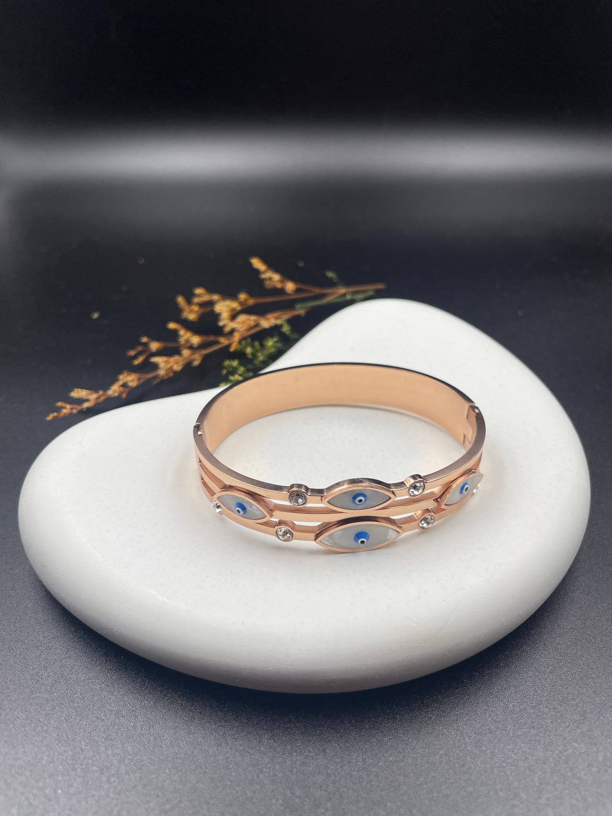 Rose Gold Evil Eye Enamel Bangle with Crystal Accents