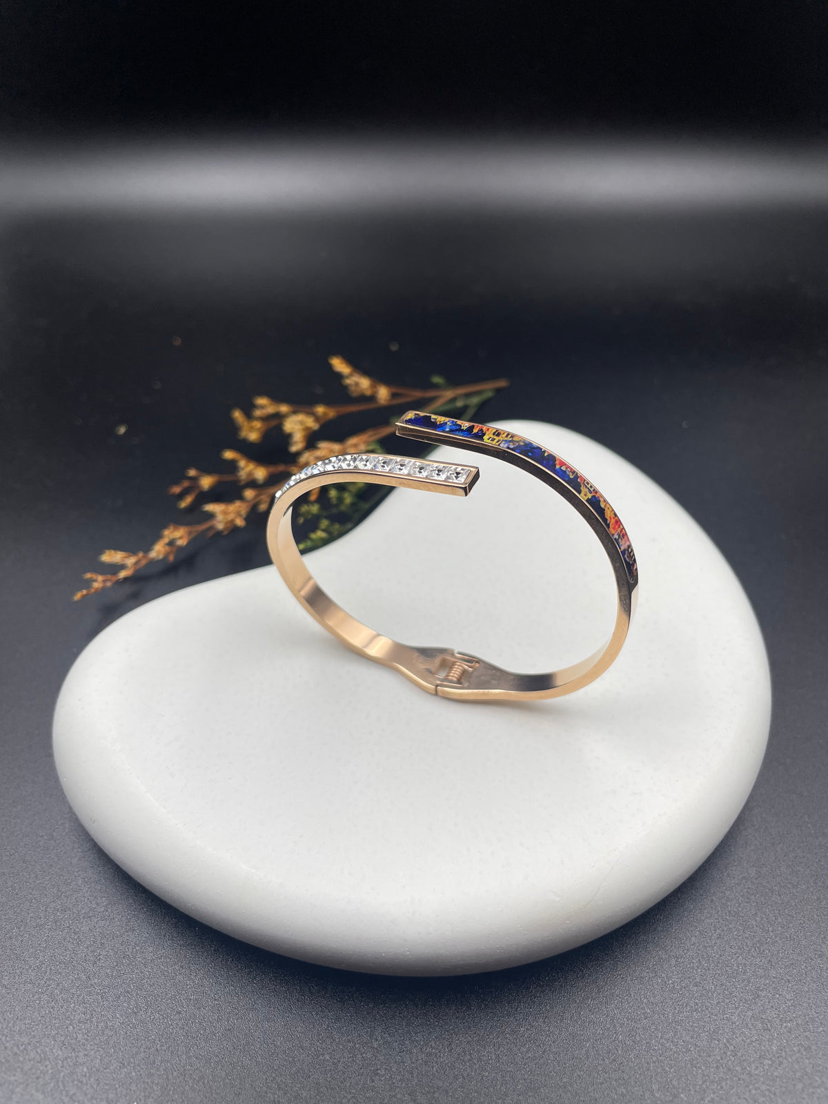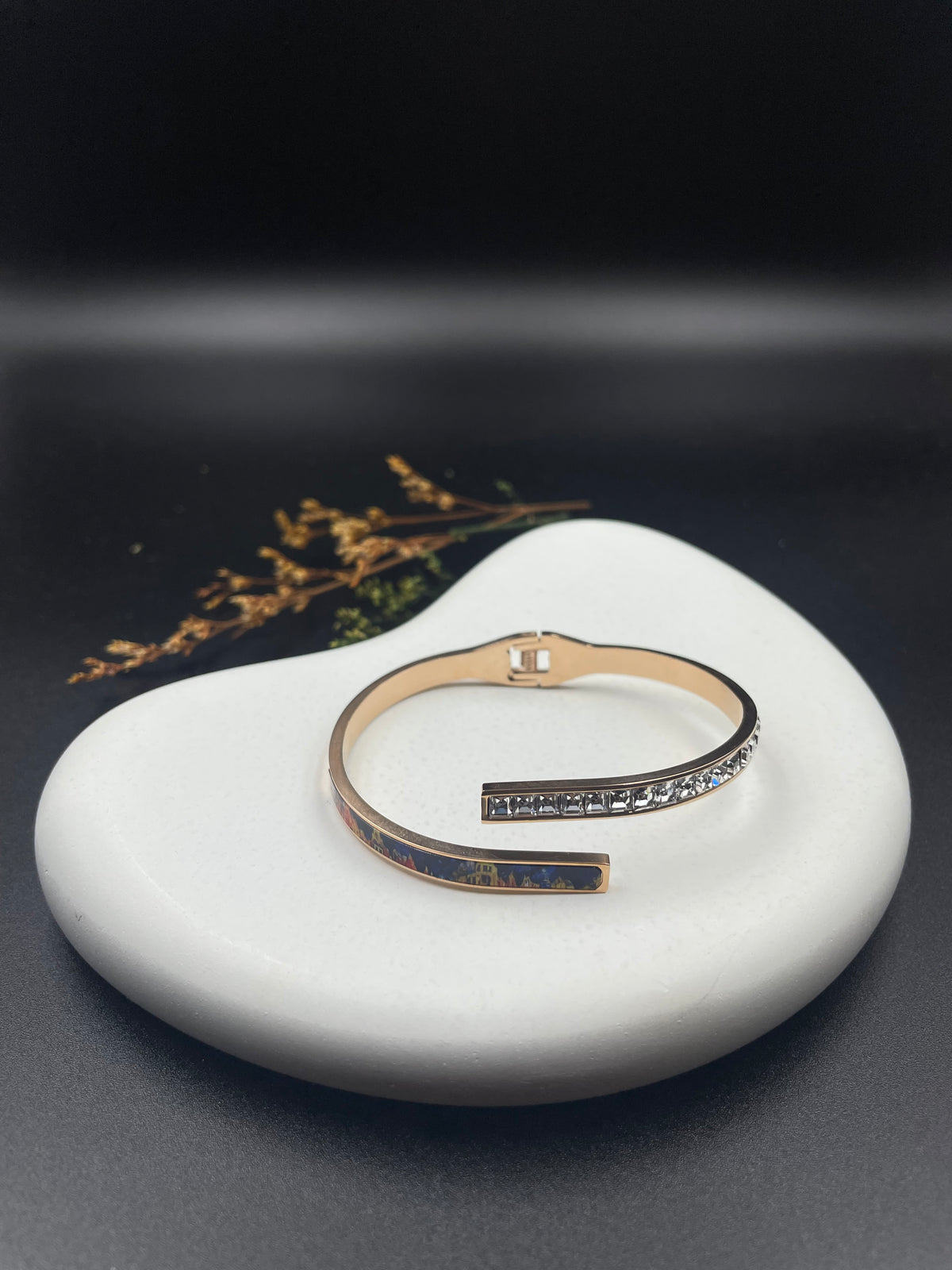 Rose Gold Open Cuff Bangle with Crystal & Enamel Accent