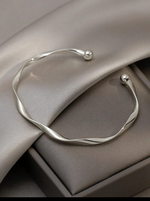 Minimalism meets elegance in this stunning open bangle. Crafted with a smooth, twisted design and a polished silver finish, it offers a refined look that effortlessly complements both casual and formal styles. The rounded ball tips add a soft, modern touch while ensuring comfort.