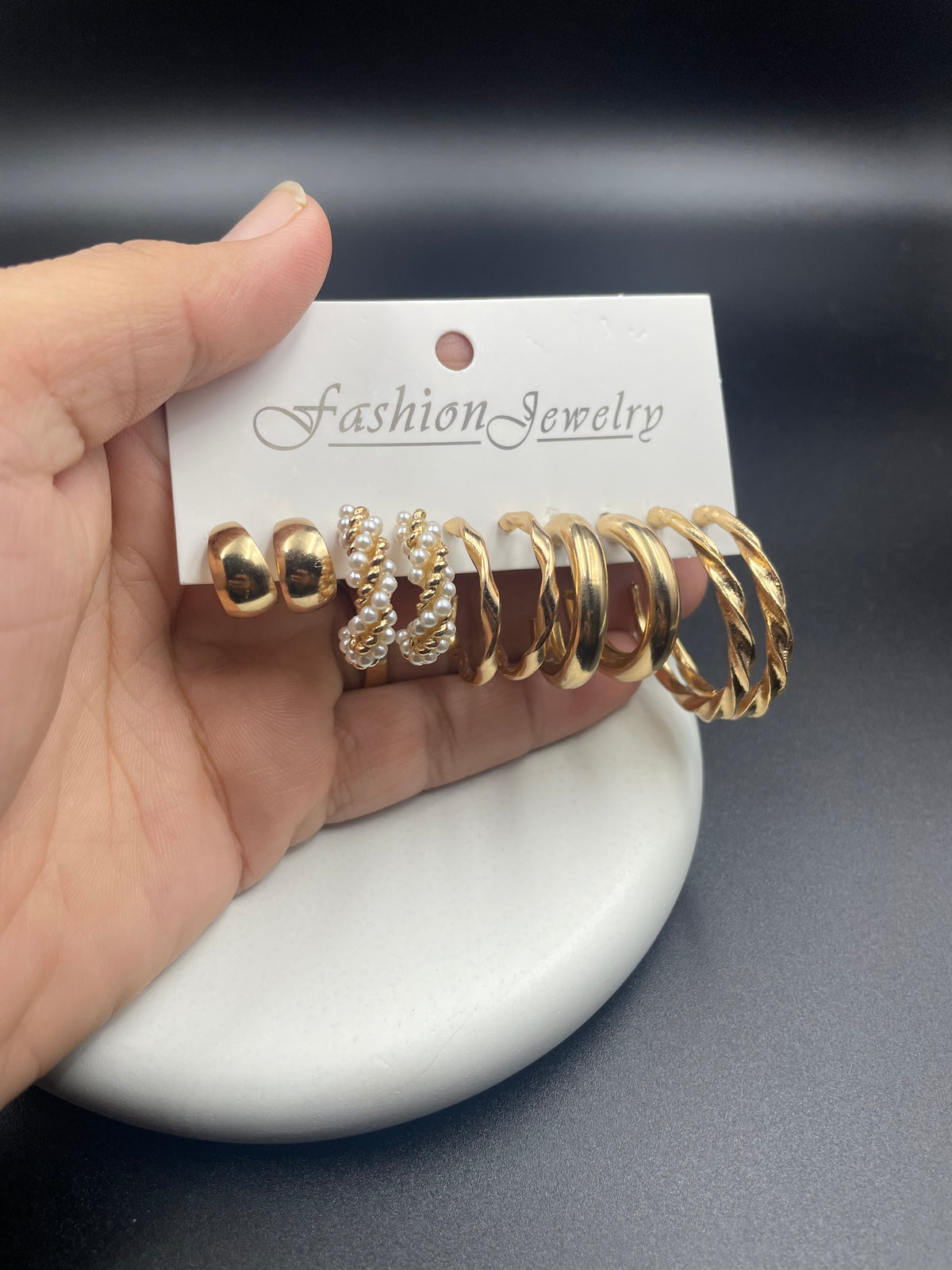 Level up your ear game with this versatile 5-pair earring set featuring a mix of modern and classic designs. From sleek gold-toned mini hoops to twisted styles and elegant faux pearl accents, this collection has the perfect pair for every outfit and occasion.