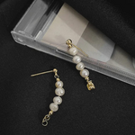 • Design: A stunning fusion of classic charm and modern elegance, these earrings feature a semi-hoop design adorned with alternating gold beads and lustrous faux pearls. Perfectly balanced, they exude sophistication with every turn.